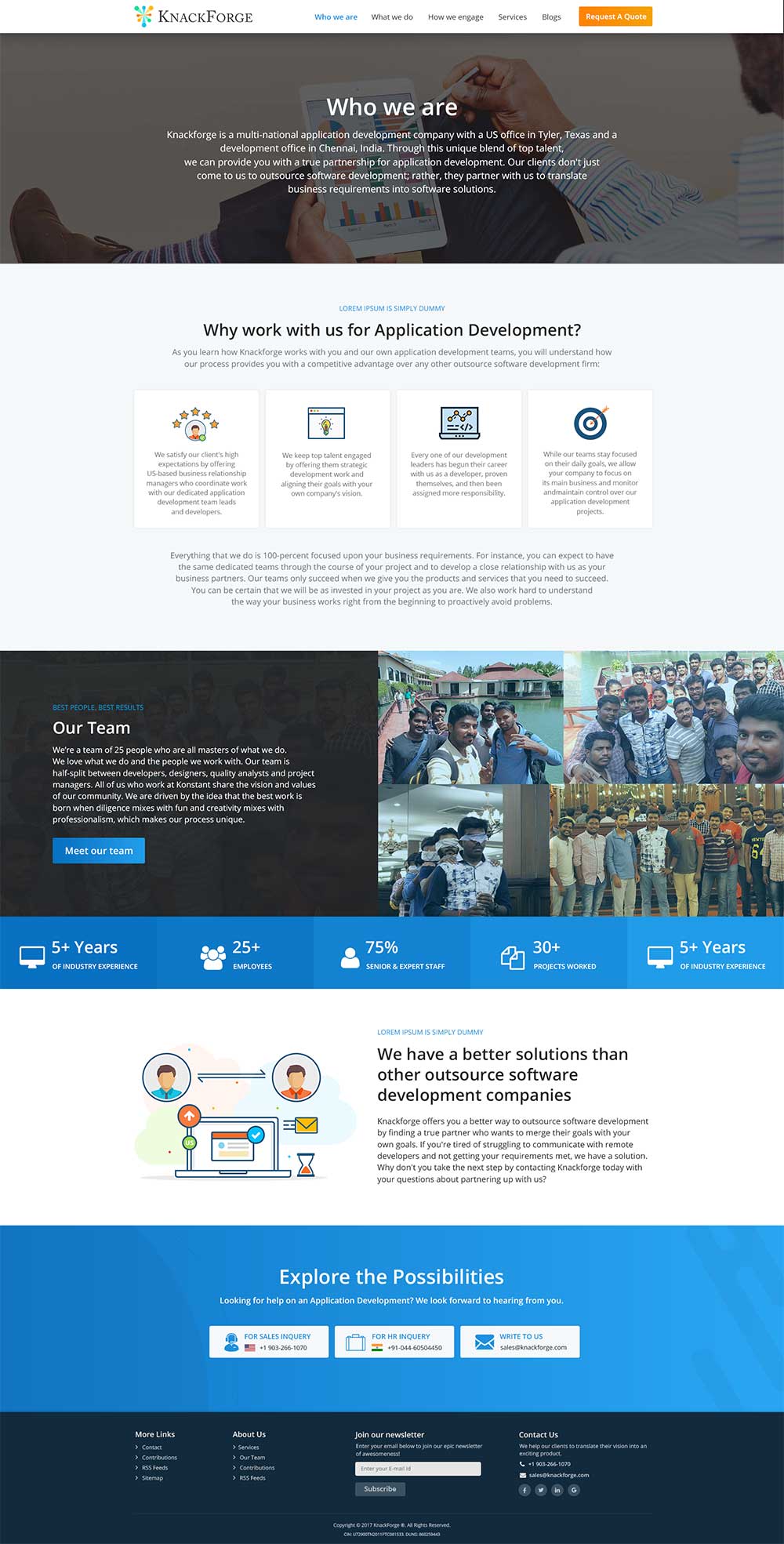 I am one and only designer who take care of all the projects of knackforge and internal design works. At knackforge I worked over 20+ projects. Developing and maintaining the front end functionality of websites. Participating in discussions with clients to clarify what they want. Worked on multiple projects simultaneously to a high standard.